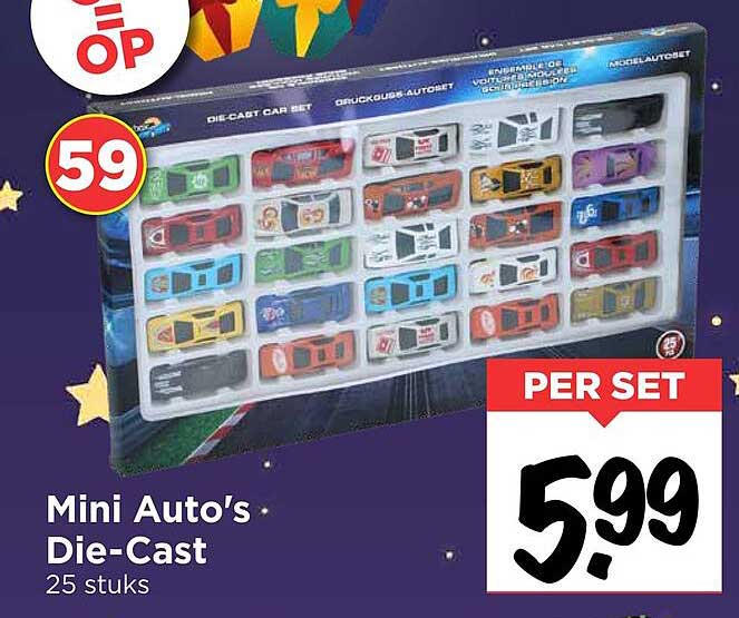 Bekijk de Mini Auto's Die-Cast aanbieding bij Vomar! Deze fantastische aanbieding is nu beschikbaar in de nieuwste Vomar folder. Profiteer van deze kans en bespaar flink op je aankoop.