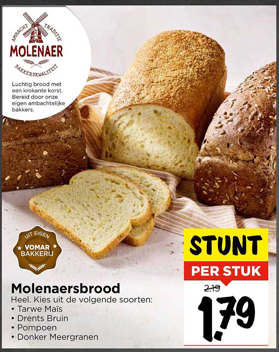 Bekijk nu de Molenaar sbrood aanbieding in de Vomar folder. Deze aanbieding is geldig van 09-03-2025 tot en met 15-03-2025.
