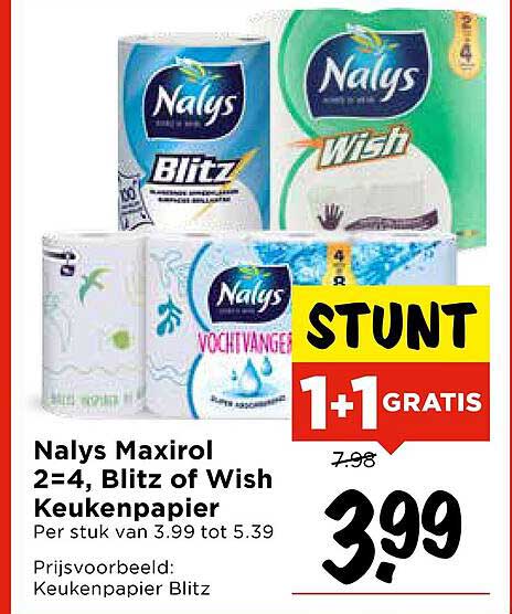 Bekijk nu de Nalys Maxirol 2=4, Blitz of Wish Keukenpapier aanbieding in de Vomar folder. Deze aanbieding is geldig van 13-08-2025 tot en met 16-08-2025.