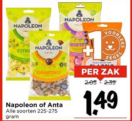 Normaal gesproken variëren de prijzen van Napoleon of Anta snoepjes tussen de €2,05 en €2,39. Met deze aanbieding van €1,49 bespaar je flink op je favoriete snoepjes. Dit is een uitgelezen kans om ze in huis te halen zonder je portemonnee te veel te belasten. Mis deze tijdelijke aanbieding niet en laat jezelf of je geliefden verwennen met deze heerlijke snoepjes.