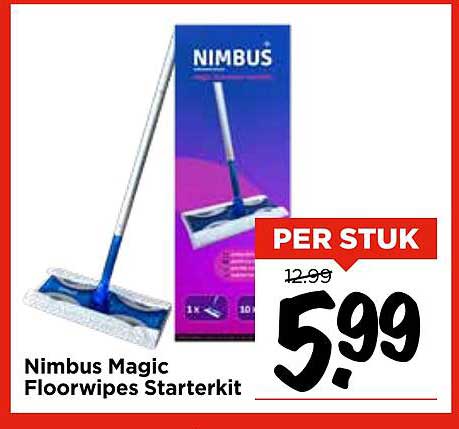 Normaal gesproken kost de Nimbus Magic Floorwipes Starterkit €12,99, maar tijdens deze aanbieding is de prijs verlaagd naar slechts €5,99. Dit betekent dat je meer dan de helft bespaart! Het is een perfecte gelegenheid om je schoonmaak routine te updaten zonder je budget te overschrijden.