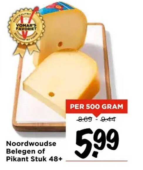 Heb je een passie voor kaas? Dan is deze aanbieding iets voor jou! De Noordwoudse Belegen of Pikant Stuk 48+ is een smaakvolle kaas die niet mag ontbreken in je keuken. Met een rijke smaak en een perfecte textuur is deze kaas ideaal voor zowel op de boterham als in diverse gerechten. En met deze tijdelijke actie van Vomar haal je het beste uit je boodschappen, zonder onnodig veel te betalen.