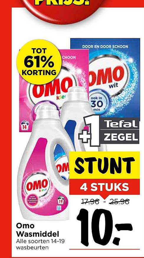 Normaal gesproken betaal je tussen de €17,96 en €25,96 voor Omo Wasmiddelen, afhankelijk van de variant en het aantal wasbeurten. Met de huidige aanbieding van €10,- profiteer je niet alleen van een aanzienlijke korting, maar ook van extra waarde, zoals de Tefalzegel die inbegrepen is bij deze actie. Dit maakt het niet alleen financieel aantrekkelijk, maar ook een slimme keuze voor de toekomst.