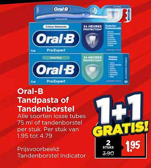 De reguliere prijs van de Oral-B producten varieert van 1,95 tot 4,79 per stuk, afhankelijk van het type. Deze aanbieding biedt je de kans om twee producten te krijgen voor de prijs van één! Dit maakt het niet alleen een slimme keuze voor je portemonnee, maar ook voor je mondverzorging. Profiteer van deze aanbieding en zorg ervoor dat je nooit zonder je favoriete mondverzorgingsproducten komt te zitten.