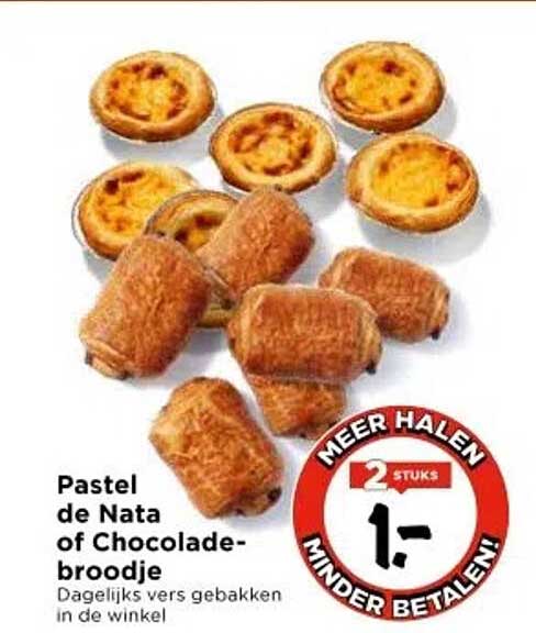 Op zoek naar een heerlijke traktatie om jezelf mee te verwennen? Kijk dan niet verder! De aanbieding van de Pastel de Nata of Chocolade-broodje bij Vomar is precies wat je nodig hebt. Deze lekkernijen zijn dagelijks vers gebakken en bieden een perfecte combinatie van smaak en textuur. Of je nu geniet van een zoete pastel of een romig chocolade-broodje, deze aanbiedingen maken je dag compleet.