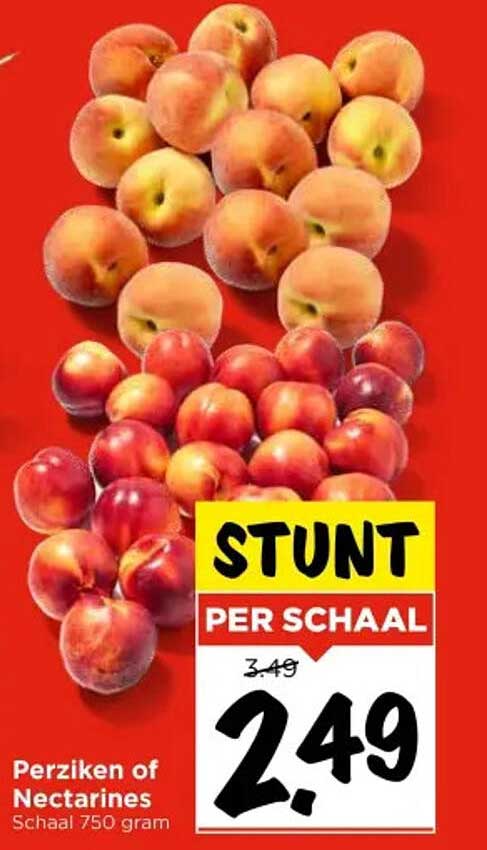 Op zoek naar een heerlijke en gezonde toevoeging aan je dagelijkse voeding? Kijk dan niet verder! Deze aanbieding van perziken of nectarines is echt een kans die je niet wilt missen. Van 21 mei tot en met 24 mei is het mogelijk om deze sappige vruchten te kopen voor een opvallend lage prijs. Perfect om te gebruiken in smoothies, salades of gewoon als tussendoortje. Ze zijn niet alleen lekker, maar ook voedzaam en vol vitaminen.