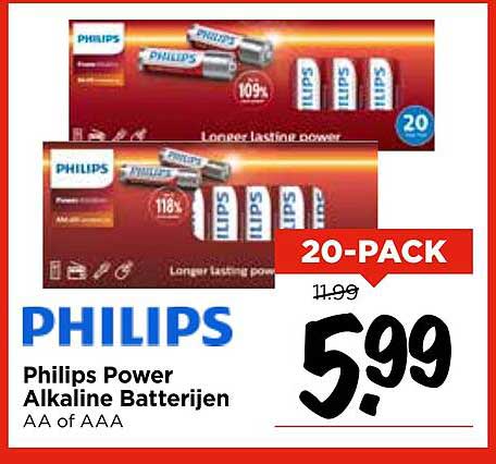 Bekijk de Philips Power Alkaline Batterijen aanbieding bij Vomar! Deze fantastische aanbieding is nu beschikbaar in de nieuwste Vomar folder. Profiteer van deze kans en bespaar flink op je aankoop.