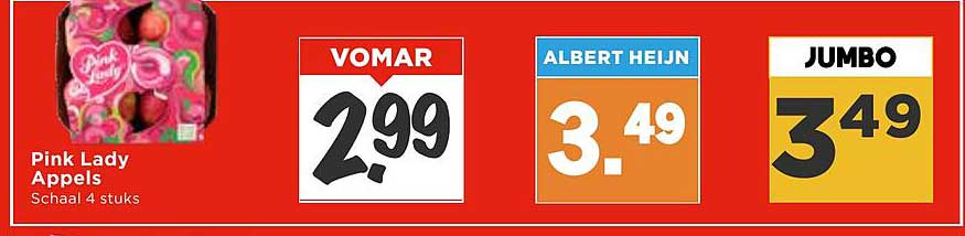 Bekijk de Pink Lady Appels aanbieding bij Vomar! Deze fantastische aanbieding is nu beschikbaar in de nieuwste Vomar folder. Profiteer van deze kans en bespaar flink op je aankoop.