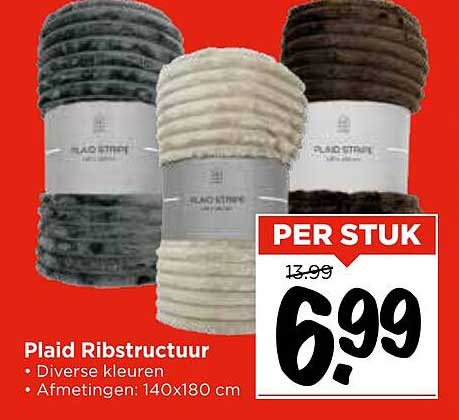 Bekijk de Plaid Ribstructuur aanbieding bij Vomar! Deze fantastische aanbieding is nu beschikbaar in de nieuwste Vomar folder. Profiteer van deze kans en bespaar flink op je aankoop.
