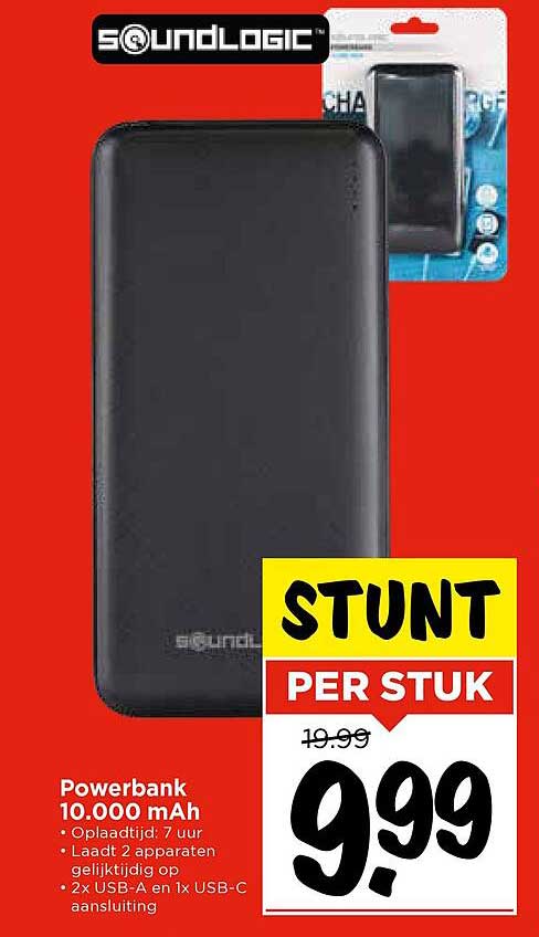 Ben je vaak onderweg en wil je nooit meer zonder batterij zitten? Dan is deze aanbieding absoluut iets voor jou! De Powerbank van Soundlogic met een capaciteit van 10.000 mAh is nu beschikbaar voor een geweldige prijs. Dit handige apparaat is ideaal voor reizigers, werkende professionals of iedereen die veel gebruik maakt van zijn smartphone of tablet. Waarom wachten? Deze aanbieding is tijdelijk geldig, dus mis het niet!