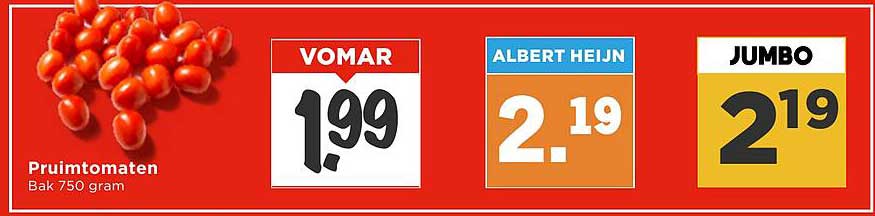 Bekijk de Pruimtomaten aanbieding bij Vomar! Deze fantastische aanbieding is nu beschikbaar in de nieuwste Vomar folder. Profiteer van deze kans en bespaar flink op je aankoop.