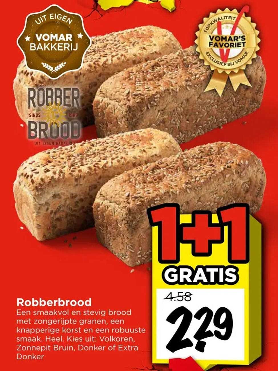 De reguliere prijs van het Robberbrood is €4,58, maar dankzij deze aanbieding krijg je een geweldig voordeel. Bij de aankoop van 1 brood, ontvang je er namelijk 1 gratis! Dit komt neer op slechts €2,29 per stuk, wat een fantastische besparing is. Dit is hét moment om je voorraad aan te vullen en te genieten van dit lekkere brood!