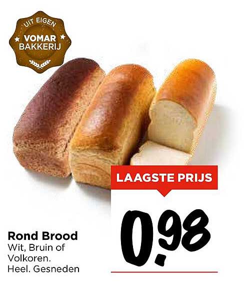 Ontdek de geweldige Rond Brood aanbieding in de nieuwste Vomar folder. Naast deze aanbieding vind je nog veel meer aantrekkelijke kortingen. Je kunt de Rond Brood eenvoudig online bestellen via de Vomar website of kopen in een winkel bij jou in de buurt.