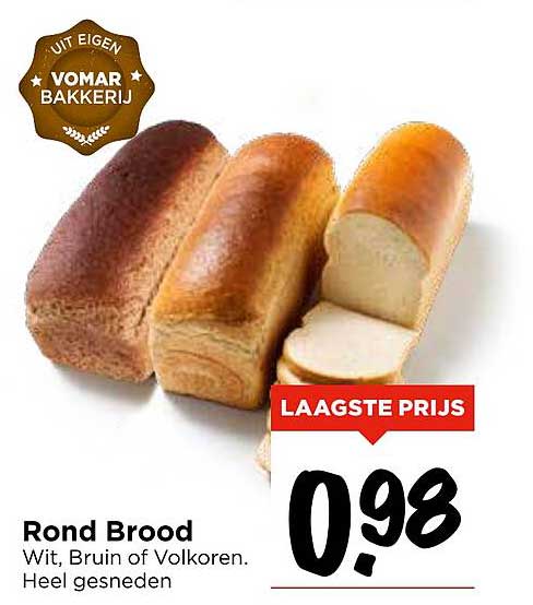 Ontdek de geweldige Rond Brood aanbieding in de nieuwste Vomar folder. Naast deze aanbieding vind je nog veel meer aantrekkelijke kortingen. Je kunt de Rond Brood eenvoudig online bestellen via de Vomar website of kopen in een winkel bij jou in de buurt.