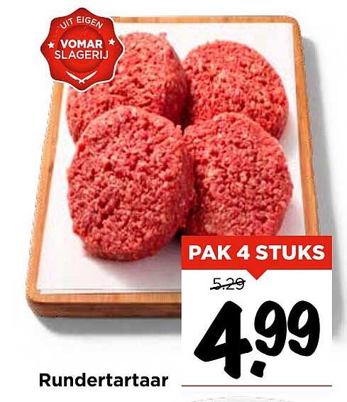Deze week biedt Vomar een geweldige aanbieding op rundertartaar! Gemaakt van het beste vlees en perfect voor zowel een snelle maaltijd als een uitgebreide lunch. Ideaal voor vleesliefhebbers die op zoek zijn naar kwaliteit en betaalbaarheid. Met de aanbieding van slechts €4,99 voor een verpakking van vier stuks, is dit een kans die je niet wilt missen!