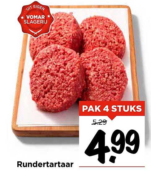Bekijk nu de Rundertartaar aanbieding in de Vomar folder. Deze aanbieding is geldig van 11-06-2025 tot en met 14-06-2025.