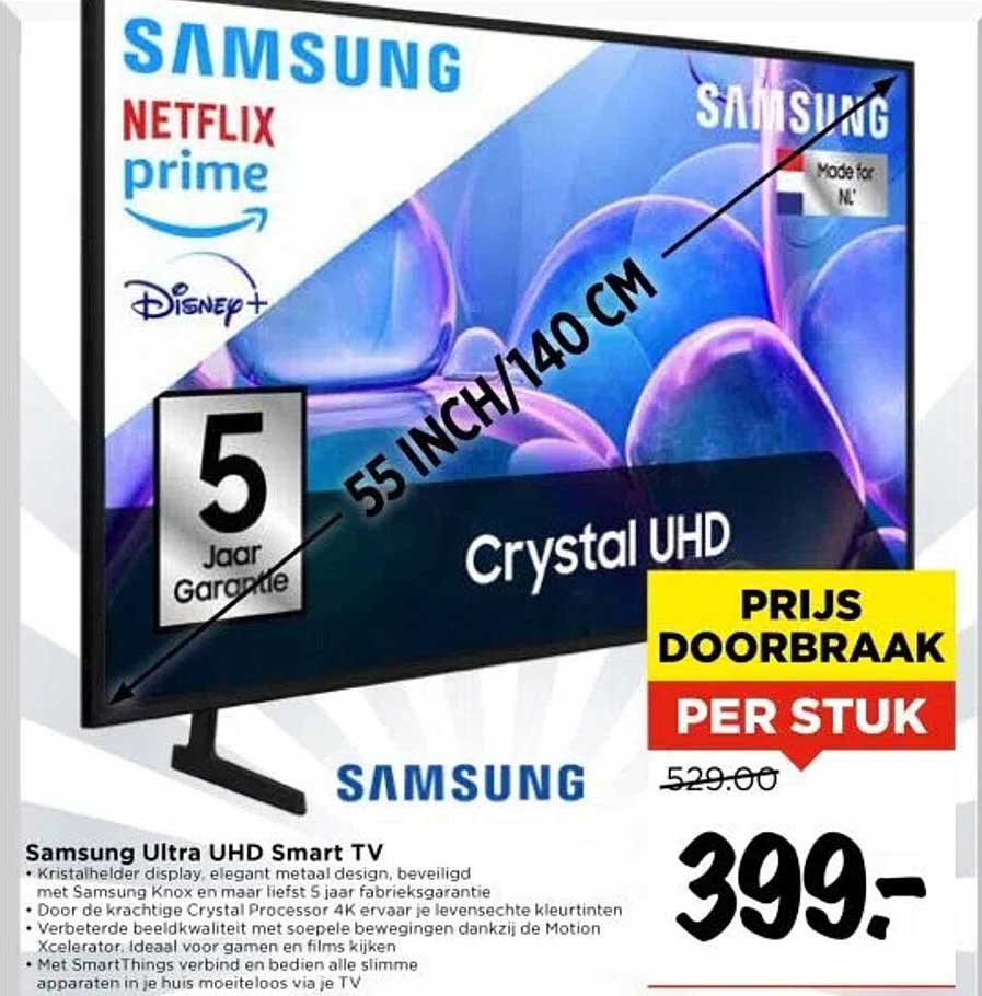 Ben je op zoek naar een nieuwe televisie die zowel stijlvol als functioneel is? Dan zijn de aanbiedingen voor de Samsung Ultra UHD Smart TV op deze pagina zeker een kijk waard! Met uitstekende beeldkwaliteit en een indrukwekkend aanbod aan functies, is dit de perfecte tijd om je kijkervaring een upgrade te geven. Deze aanbieding is tijdelijk geldig van 23 oktober tot en met 25 oktober 2025, dus mis het niet!