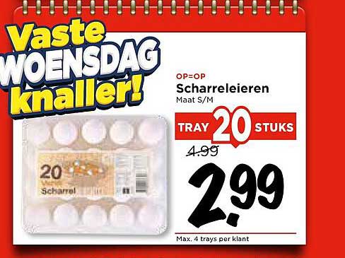 De originele prijs voor deze tray met 20 eieren is €4,99, maar tijdens deze aanbieding betaal je slechts €2,99! Dit betekent een besparing van maar liefst €2,00! Dat is een uitstekende deal die je niet wilt missen. Met een maximum van vier trays per klant, kun je echt profiteren van deze geweldige aanbieding.