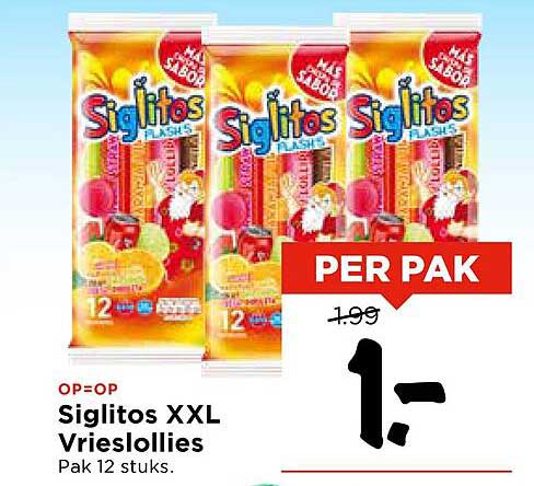 De prijs van de Siglitos XXL Vrieslollies is nu tijdelijk verlaagd van €1,99 naar slechts €1,- per pak. Dit betekent een aanzienlijke besparing! Vergelijk deze aanbieding met de normale prijs en je zult zien dat dit een uitstekende kans is om je voorraad lekkernijen aan te vullen.