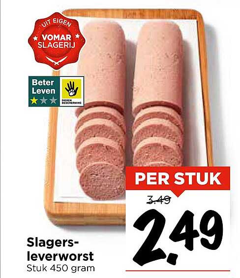 De slagersleverworst is nu beschikbaar voor de scherpe prijs van €2,49 per stuk, in plaats van de reguliere prijs van €3,49. Dit betekent dat je een flinke besparing kunt realiseren! Maak gebruik van deze aanbieding om je favoriete lunch of borrelplank een upgrade te geven zonder je budget te overschrijden.