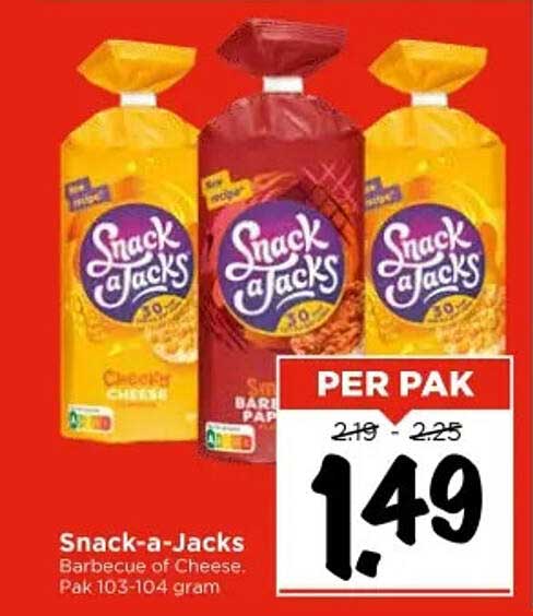 Als je op zoek bent naar een heerlijke en luchtige snack, dan is deze aanbieding iets voor jou! Snack-a-Jacks zijn perfect voor tussendoor: knapperig en vol smaak, ideaal om te combineren met je favoriete dip of gewoon zo uit de verpakking te genieten. En nu krijg je ze voor een geweldige prijs! Van 25 juni tot en met 28 juni 2025 kun je deze onweerstaanbare snack kopen voor slechts €1,49 per pak, wat je toegang geeft tot al die heerlijke smaken zonder je budget te overschrijden.