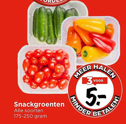 Ontdek de geweldige Snackgroenten aanbieding in de nieuwste Vomar folder. Naast deze aanbieding vind je nog veel meer aantrekkelijke kortingen. Je kunt de Snackgroenten eenvoudig online bestellen via de Vomar website of kopen in een winkel bij jou in de buurt.