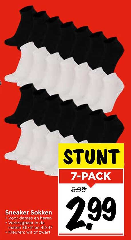 Wat maakt deze aanbieding nog aantrekkelijker? De prijs! Voor slechts €2,99 krijg je maar liefst zeven paar sokken, terwijl de reguliere prijs €5,99 is. Dit betekent dat je een geweldige korting krijgt. Dit is de perfecte kans om je sokkenvoorraad aan te vullen zonder je portemonnee te veel te belasten.