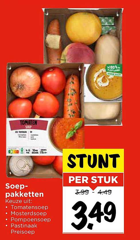 Deze aanbieding is echt een kans die je niet wilt missen! De normale prijs ligt tussen de €3,99 en €4,49, maar nu kun je elk soep-pakket verkrijgen voor slechts €3,49. Dit betekent een geweldige besparing op een gezonde maaltijd, wat het tot een slimme keuze maakt voor de portemonnee en je gezondheid.