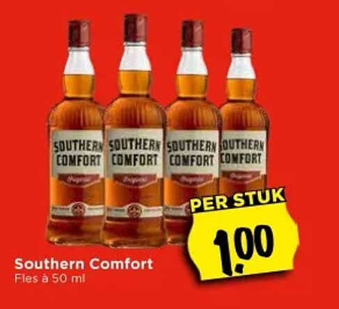 Met een actieprijs van slechts €1,00 per stuk, is dit een aanbieding die je niet wilt missen! De reguliere prijs ligt vaak veel hoger, waardoor je nu flink kunt besparen. Het is de perfecte gelegenheid om Southern Comfort uit te proberen of je voorraad aan te vullen voor een feestje of een gezellig samenzijn.