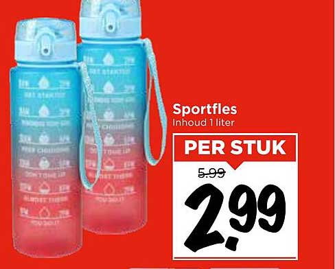 De normale prijs van deze sportfles is €5,99, maar nu kun je hem voor slechts €2,99 per stuk aanschaffen! Dit is een geweldige kans om je hydratatie game naar een hoger niveau te tillen zonder je budget te overschrijden.