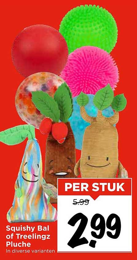 Bekijk nu de Squishy Bal of Treelingz Pluche aanbieding in de Vomar folder. Deze aanbieding is geldig van 31-08-2025 tot en met 06-09-2025.