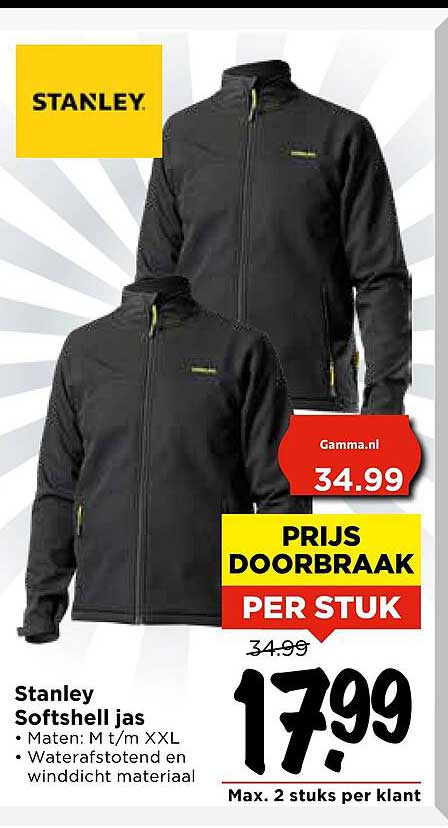 Bekijk de Stanley Softshell Jas aanbieding bij Vomar! Deze fantastische aanbieding is nu beschikbaar in de nieuwste Vomar folder. Profiteer van deze kans en bespaar flink op je aankoop.