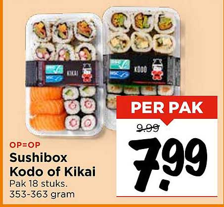 Bekijk nu de Sushibox Kodo of Kikai aanbieding in de Vomar folder. Deze aanbieding is geldig van 20-04-2025 tot en met 26-04-2025.