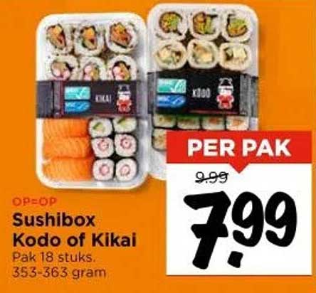 Bekijk nu de Sushibox Kodo of Kikai aanbieding in de Vomar folder. Deze aanbieding is geldig van 23-04-2025 tot en met 26-04-2025.