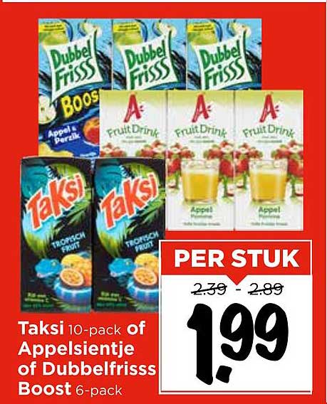 Taksi 10-Pack Of Appelsientje Of Dubbelfrisss Boost 6-Pack aanbieding bij Vomar
