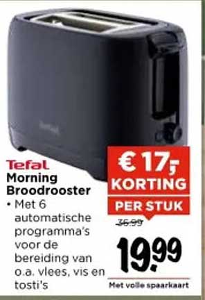 Bekijk de Tefal Morning Broodrooster aanbieding bij Vomar! Deze fantastische aanbieding is nu beschikbaar in de nieuwste Vomar folder. Profiteer van deze kans en bespaar flink op je aankoop.