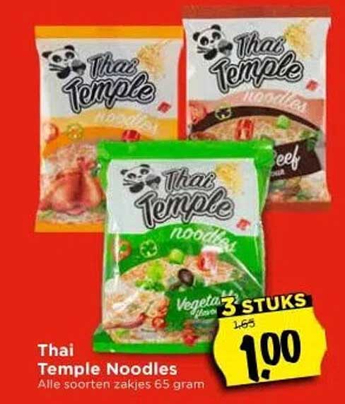 Bekijk nu de Thai Temple Noodles aanbieding in de Vomar folder. Deze aanbieding is geldig van 25-09-2025 tot en met 27-09-2025.