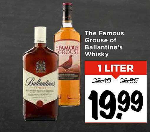Dit is een geweldige kans voor liefhebbers van whisky! Op deze pagina vind je een aantrekkelijke aanbieding voor The Famous Grouse of Ballantine's Whisky, perfect voor een gezellige avond met vrienden of een speciaal moment. Met deze aanbieding kun je genieten van hoogwaardige whisky tegen een scherpe prijs.