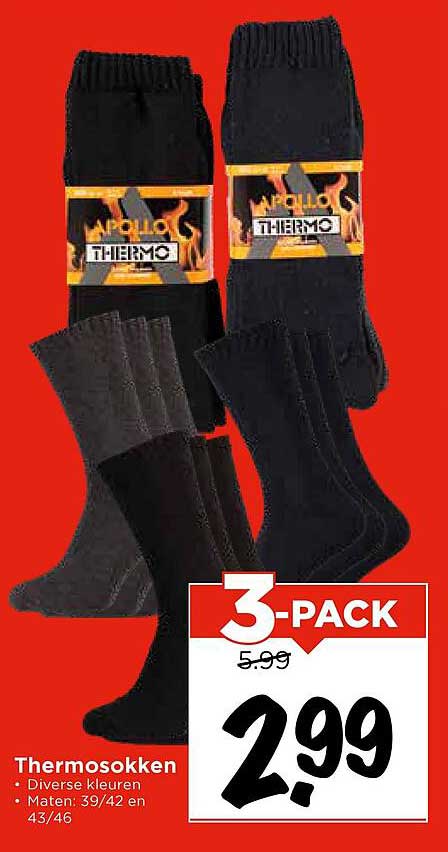 Normaal kost een 3-pack thermosokken €5,99, maar tijdens deze aanbieding kun je ze kopen voor slechts €2,99! Dat betekent een besparing van meer dan 50%. Dit is de perfecte gelegenheid om je voorraad aan te vullen of om een paar extra te geven aan vrienden of familie.