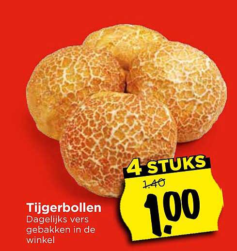 Normaal gesproken kosten deze heerlijke tijgerbollen €1,40, maar deze week profiteer je van een geweldige aanbieding en zijn ze verkrijgbaar voor slechts €1,00! Dat is een besparing van 29%! Mis deze kans niet om je gezinsmaaltijden een extra smaakje te geven met deze heerlijke broodjes.