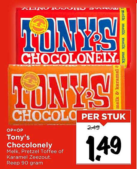 Ben je een liefhebber van heerlijke chocolade? Dan is deze aanbieding iets voor jou! Tony's Chocolonely staat bekend om zijn unieke smaken en kwaliteitsingrediënten. Van 2 oktober tot 4 oktober 2025 kun je deze heerlijke repen in de smaken Melk, Pretzel Toffee of Karamel Zeezout met een aantrekkelijke korting aanschaffen. Wees er snel bij, want op = op!