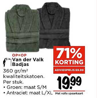 Bekijk de Van Der Valk Badjas aanbieding bij Vomar! Deze fantastische aanbieding is nu beschikbaar in de nieuwste Vomar folder. Profiteer van deze kans en bespaar flink op je aankoop.