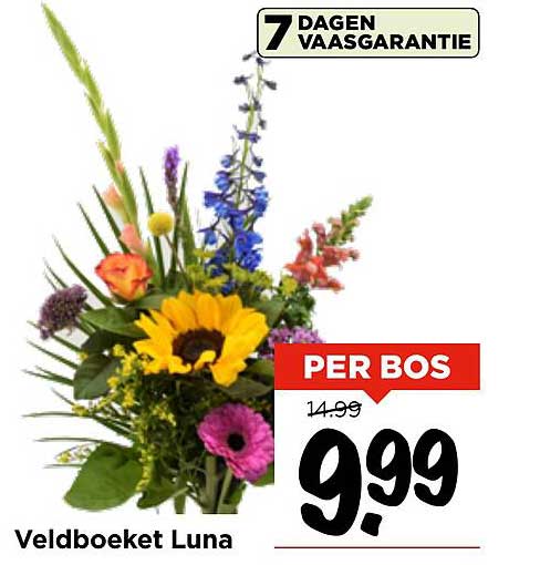 Bekijk de Veldboeket Luna aanbieding bij Vomar! Deze fantastische aanbieding is nu beschikbaar in de nieuwste Vomar folder. Profiteer van deze kans en bespaar flink op je aankoop.