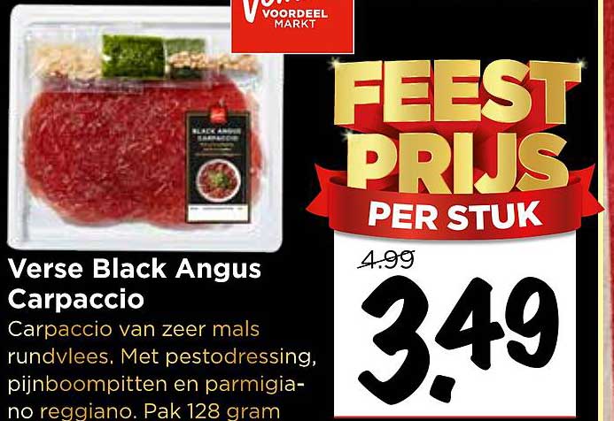 Bekijk de Verse Black Angus Carpaccio aanbieding bij Vomar! Deze fantastische aanbieding is nu beschikbaar in de nieuwste Vomar folder. Profiteer van deze kans en bespaar flink op je aankoop.