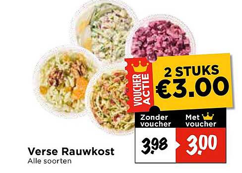 Normaal gesproken kost de verse rauwkost €3,98 per twee porties. Met de huidige aanbieding betaal je maar €3,00 als je gebruik maakt van de voucher! Dit betekent dat je niet alleen geniet van een smakelijke traktatie, maar ook aanzienlijk bespaart. Dat is wat wij een win-win situatie noemen.