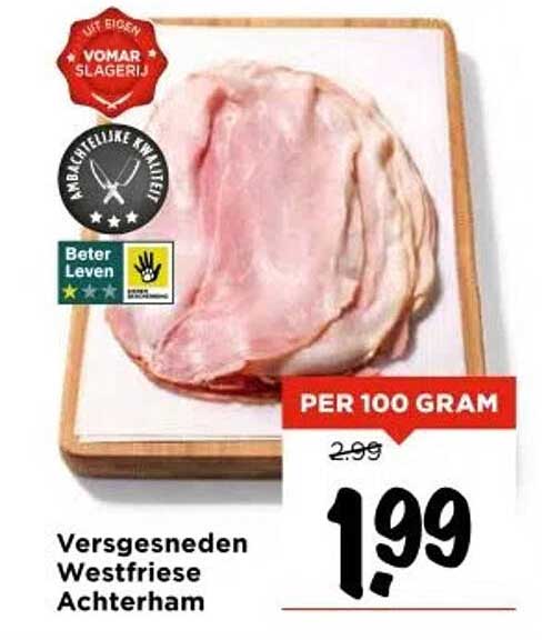 Bekijk nu de Versgesneden Westfriese Achterham aanbieding in de Vomar folder. Deze aanbieding is geldig van 25-09-2025 tot en met 27-09-2025.