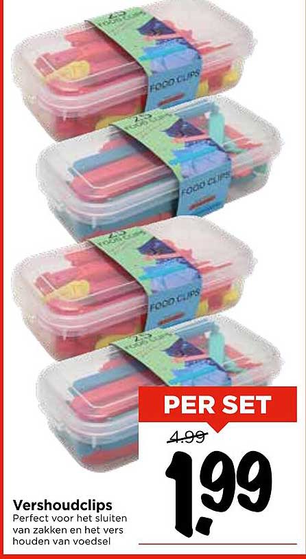 Normaal gesproken kosten deze vershoudclips €4,99, maar nu zijn ze te koop voor slechts €1,99 per set! Dit is een aanzienlijk voordeel dat je niet wilt missen. Met deze aanbieding bespaar je dus niet alleen geld, maar krijg je ook een product van hoge kwaliteit.