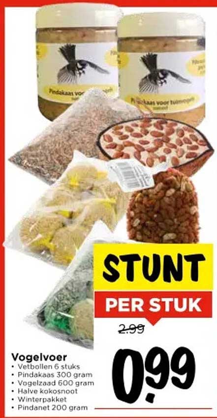 Deze aanbieding is een echte stunt! Normaal gesproken bedraagt de prijs €2,99, maar nu haal je deze prachtige producten voor slechts €0,99 per stuk. Dit betekent dat je niet alleen de vogels in jouw tuin blij maakt, maar ook je portemonnee. Een perfecte kans om je vogelvoer voorraad aan te vullen!