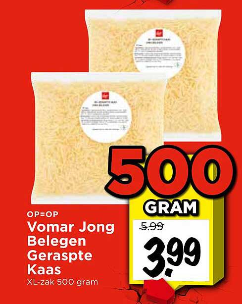 Bekijk de Vomar Jong Belegen Geraspte Kaas aanbieding bij Vomar! Deze fantastische aanbieding is nu beschikbaar in de nieuwste Vomar folder. Profiteer van deze kans en bespaar flink op je aankoop.