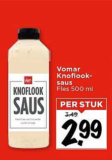 Normaal kost de Vomar Knoflook-saus €3,49, maar nu verkrijgbaar voor slechts €2,99. Dat is een besparing van €0,50! Dit maakt deze aanbieding niet alleen aantrekkelijk voor je portemonnee, maar ook voor de smaakpapillen.